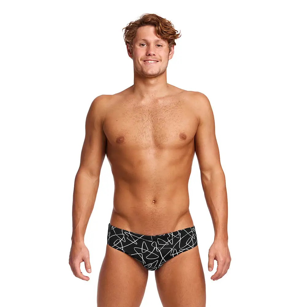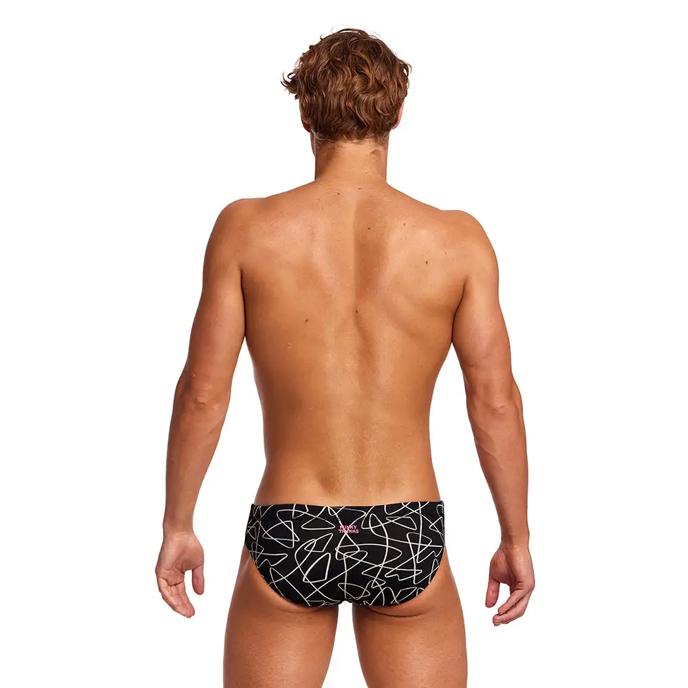 A classic cut brief with 8cm sides and flat elastic waistband and flatlock stitch finish. Drawcord, front lining and Funky Trunks embroidery come standard. Available in sizes XS – XL.
