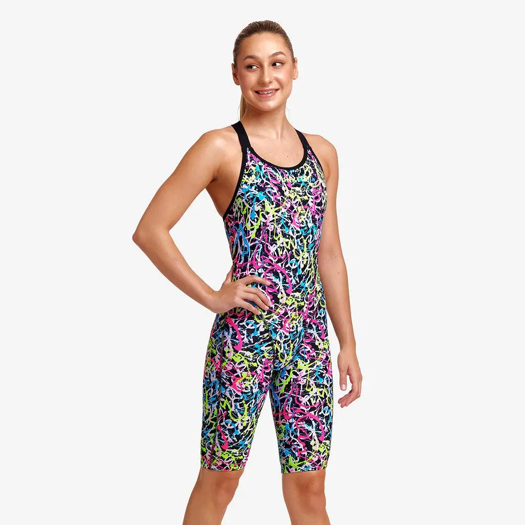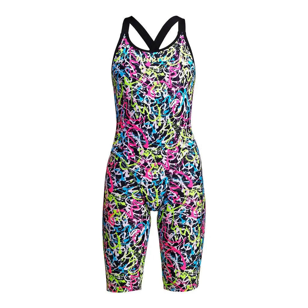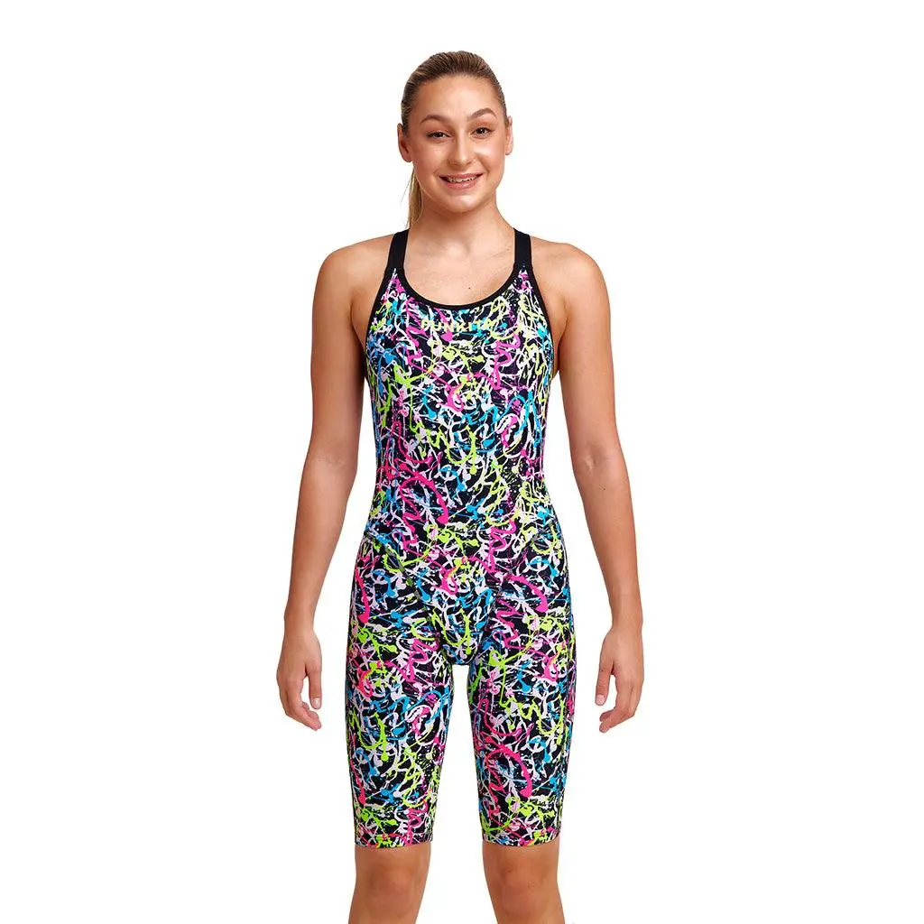 - Full coverage for the girl who wants complete sun protection on their upper body with full arms, high back and high neck one piece.