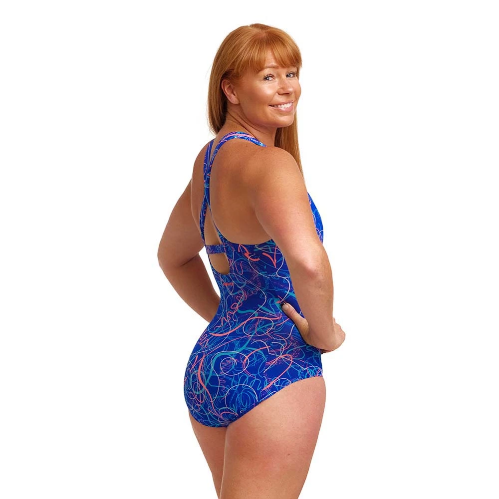 Designed to suit the active woman wanting greater structure from her swimwear, Funkita Form embraces comfort and functionality and combines hidden support, coverage and chlorine resistance for the fuller figure. Firming and controlling powermesh lining, underwiring, mastectomy pocketing and padded cups offer well-structured bust and body support for a variety of sizes. One piece and two piece separates are available in sizes 10 – 20, extending to an E cup.