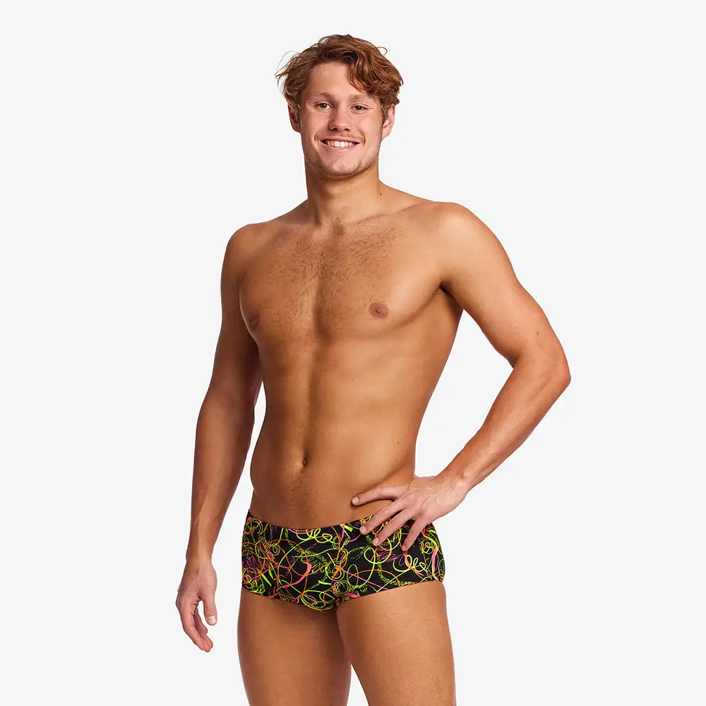 Made from Funky Trunk exclusive C-Infinity fabric, a 100% Italian polyester that is a colourful breakthrough in chlorine resistant fabric technology! The superior choice for swimmers, C-Infinity has exceptional strength and can retain its durability far beyond other elastane swimwear fabrics. Ideal for frequent pool use for recreational and performance based swimming.