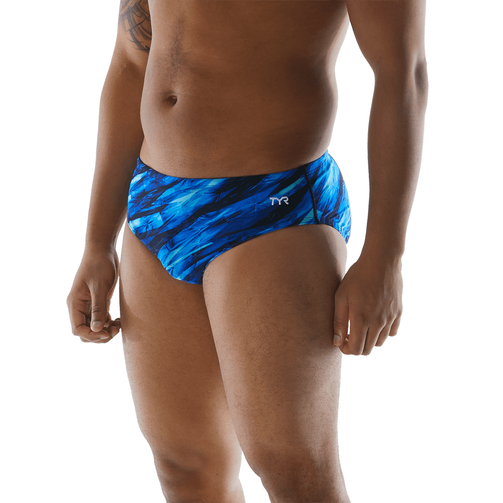 Constructed with TYR’s most durable textile, Durafast Elite® – the RVITR7A performance swimsuit utilizes high denier poly fiber and innovative circular knit construction to combine the strength and colorfastness of polyester with the comfort of spandex. Featuring a fitted brief style, adjustable drawcord waist and bold print, the TYR racer is ideal for athletes who want a combination of minimal coverage and comfortable support during every swim.