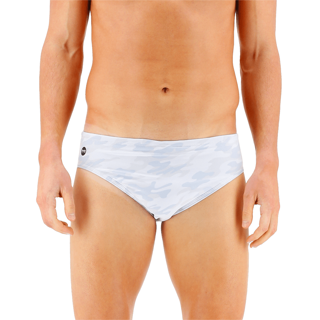 Stay a step ahead of the competition in the TYR Men’s Whiteout Camo Racer Swimsuit.